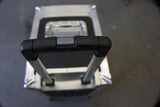 This is a pullout handle. It has a release button and locks in several places. On most cases, you'll need to add the recessed corner casters as well unless this is for a case with swivel casters already installed. When this is added to the case, we make sure that the proper interior height is correct so this adds about 1-1.5" to the total height on most cases. There are some cases where it is not necessary to add extra height to the case when adding this. If you have questions on whether this will mount on your case, feel free to contact us!
