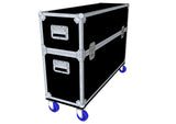 These can be custom built to size but are standard at 47" w x 14 inch d x 29" h. They are ATA 300 rated and will withstand the rigors of shipping. There are a lot of companies selling cases like this made out of a lightweight plastic that only tend to make a few trips - these cases will last many shipments - especially the 3/8 inch and 1/2". 1/4 inch is not recommended except for weight-saving purposes. 3/8 inch polypropylene, 3/8 inch birch and 1/2 inch are recommended. We can build the case without the 4 inch swivel casters and use the recessed corner casters for $40 less