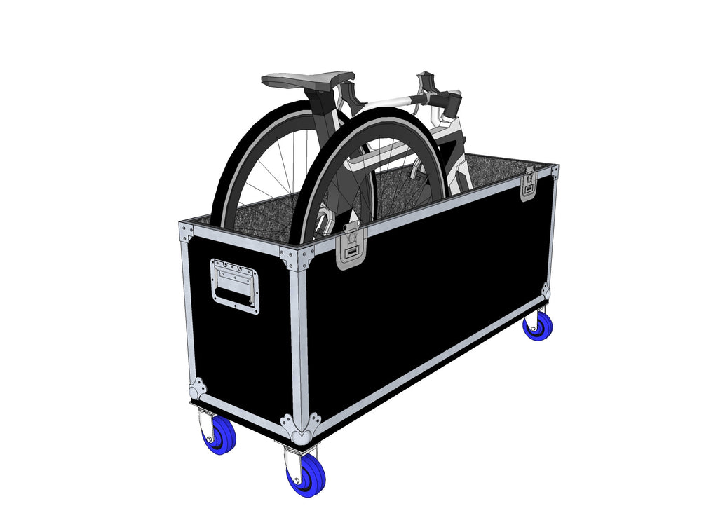 This case is ideal for racing triathletes and roadies for safe traveling of your equipment. You won't need to completely disassemble your bike in order to use this case. You undo the wheels and place it in the case and attach the forks to the mounts inside the case. There is a 1/2" plank foam lining inside the case - you can affix the wheels and chain via velcro straps upon request. There is plenty of extra usable space for helmets, shoes, tools and other gear